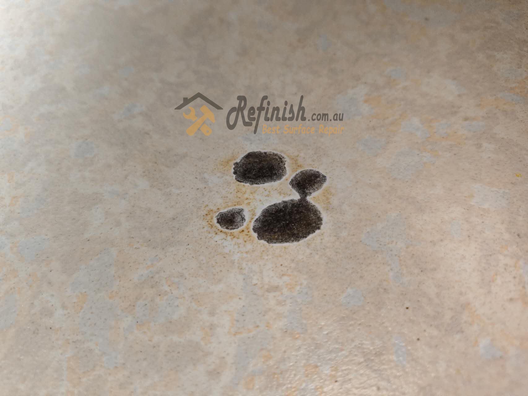 We conducted a detailed assessment of the burn area, carefully preparing the surface by levelling the damaged fibres and stabilising the surrounding material. Custom colour was mixed on-site to match the original tone and grain pattern of the benchtop.