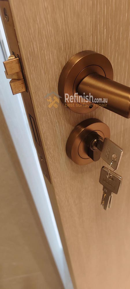 We stabilized the damaged lock area and filled the deep chips with specialized timber filler.